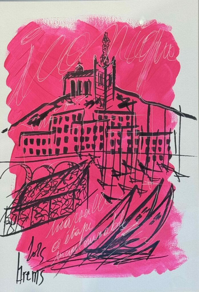 Avec son bleu vibrant signature et son rose puissant, il retranscris les plus belles vues sur des gouaches ou des toiles aux tailles démesurées.