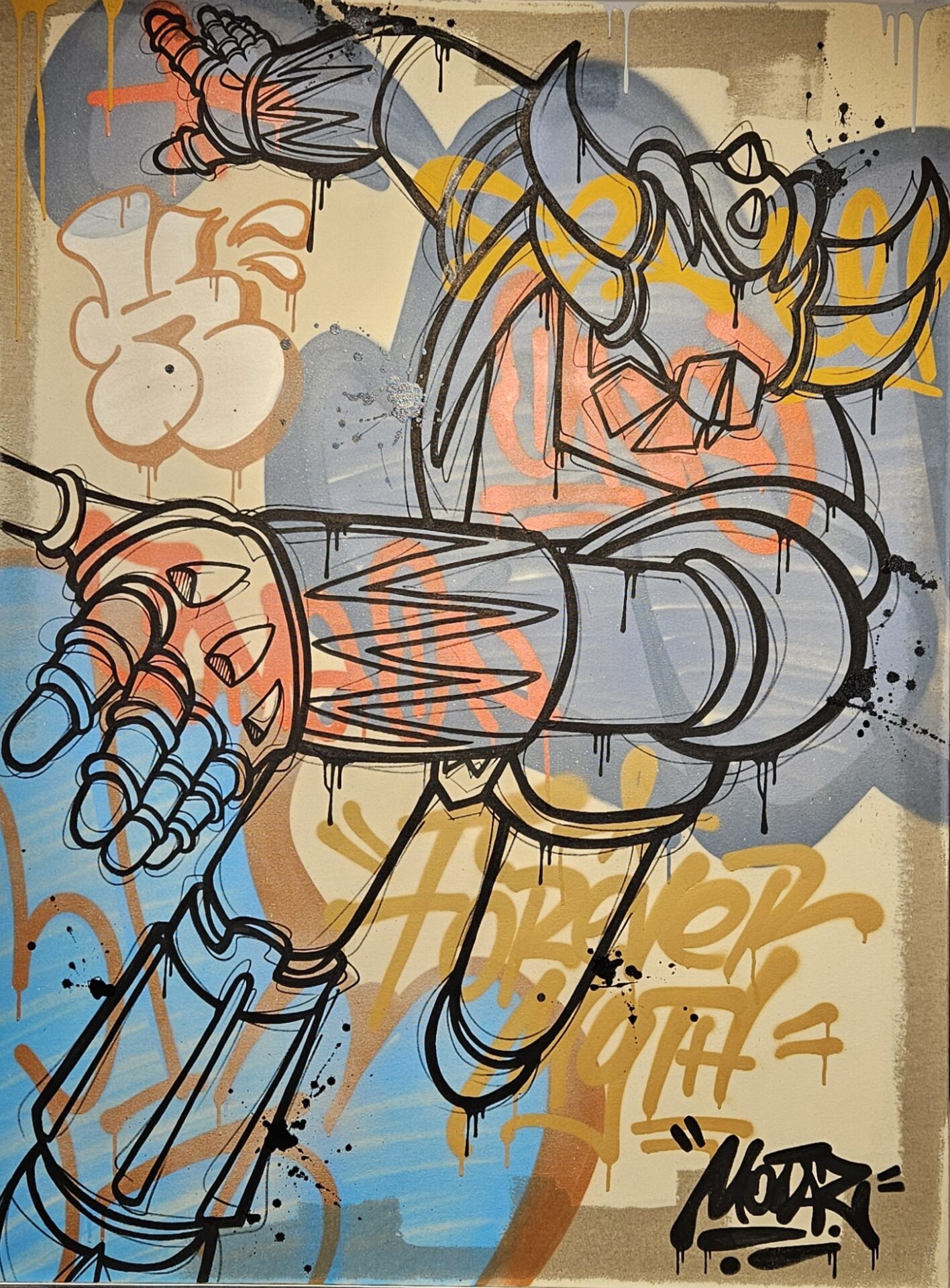 Technique mixte sur châssis entoilé